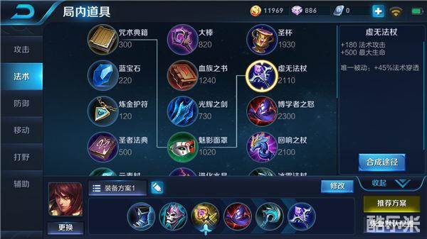 六神装推荐:秘法之靴+痛苦面具+辉月+博学者之怒+冰霜法杖+虚无法杖