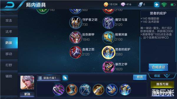 装备推荐:暗影战斧+急速战靴+破甲弓+制裁之刃+破军+贤者的庇护