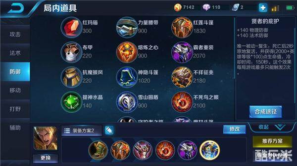 六神装推荐:影忍之足、红莲斗篷、反伤刺甲、不死鸟之眼、霸者重装、贤者的庇护