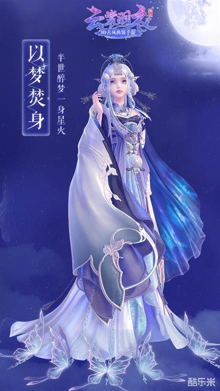 而有着“半世醉梦,一身星火”之称的“以梦焚身”套装也在本次版本之中与玩家们见面。端庄的白发,绾成精致古典的发型;而衣裙为幽紫色的基调,月色晕染得紫光四溢,头顶上的珠冕熠熠生辉,令人陶醉得移不开眼。长袖上有枝枝蔓蔓的蝴蝶元素,裙摆择优若隐若现的锁链及透明翅膀的蝴蝶,宛如一场庄生晓梦。