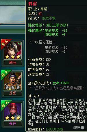 侠义水浒传游戏里一个好的肉盾不管是火并还是推图的时候,都会发挥出重要作用。只有前面的肉顶住敌人的攻击,后面的输出将领才能安全的输出。随着玩家等级的升高,推图的难度也越来越高,橙色肉盾往往顶不住对方几下就死了,所以红色肉盾就成为了大家的目标。那么95级之后如何选择肉盾呢,我们先来看几个红色肉的属性:这个是第六章的肉盾,下面是第八章的因为第五章和第七章的英雄没有肉盾,第十章前期难度太大不做考虑。