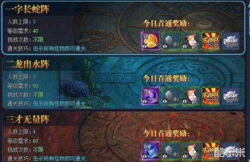 之后的副本要求参与的人数就越来越多的,原因很简单,这些副本需要玩家们的配合。四门斗底阵一共需要四名玩家,分别坚守一条道路才可以通关。五星封印阵则需要利用五行相克的原理,所以需要五名玩家的配合。同样的道理,七杀星影阵需要六名玩家,同时激活副本里的六个光圈,才能够召唤出隐藏BOSS。