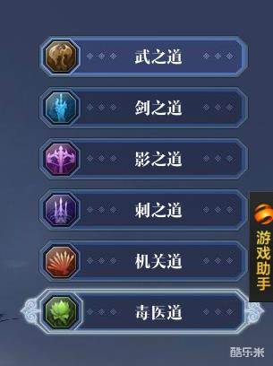 进入游戏首先选择职业,根据小说背景,人物选择有六个职业,武之道,剑之道,影之道,刺之道,机关道和毒医道。