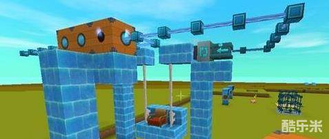 材料:冰块若干、转轴方块*2、电能增幅器*2、感应方块*3、电能线、木栅栏、沙发