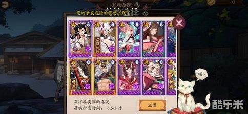 2、猫粮、狗粮的持续时间只与设置的式神有关,其中SSR固定为6.5小时,SR固定为7.0小时,R固定为7.5小时,所以最好选择SSR来吸引动物