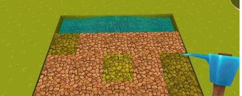 4.用锄头把土块挖成可以种植麦子的状态,边上的水的作用是用来保证土块一直可以维持这个状态的;