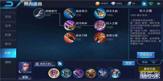 巡守利斧提高打野收益,前期增加血量提高生存能力。在中后期将其升级为巨人之握,使其身板更硬。