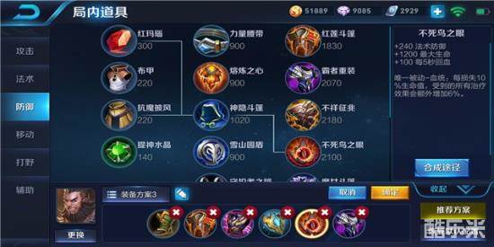 抵抗之靴+红莲斗篷+暴烈之甲+极寒风暴+不死鸟之眼+霸者重装(最后一件装备可以自由搭配)