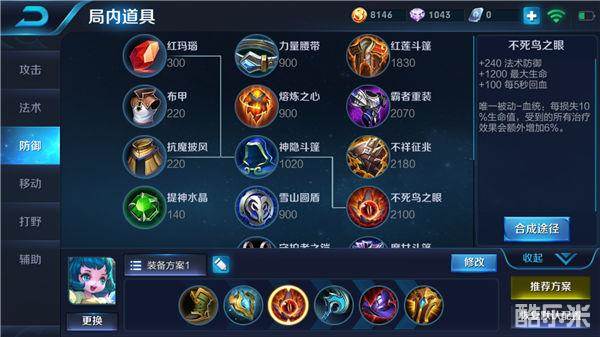 出装上面建议半肉半法,这个版本的半肉蔡文姬很是让人头疼,抗伤害能力相当不错,装备上推荐出影忍之足、极寒风暴、不死鸟之眼、冰霜法杖、博学者之怒、近卫荣耀。