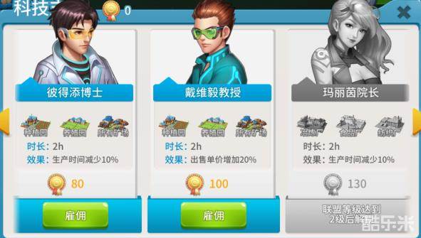 【科技支援】主要是雇佣高级的NPG来促进联盟科技的生成效率