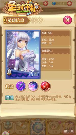 吉雅虽为公主的贴身侍女,但是在关键时刻也可以挺身保护公主,她拥有很多近战勇士所不及的技能,是公主最信任的挚友!“枪之圆舞”技能可以快速转枪攻击,然后将敌人击飞,具备击飞、击飞双效果。“裂地劈”技能可以用手中的枪发出蓄力一击,具有击退、击飞、眩晕三种效果。第三技能“攻击提升”比较常见,是短期内爆发战斗力的辅助技能。由吉雅的技能我们可以看出,作为近战英雄的她拥有强大的控场能力,两个技能携带5种效果,难怪可以成为公主的贴身侍女,恐怕任何敌人想接近公主都要付出极大的代价!
