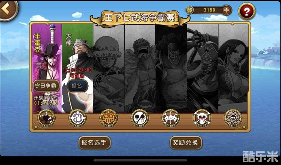王下七武海争霸赛是《航海王 启航》4.0版本的主打玩法之一,作为漫画中最强战力的代表称号之一,船长们在游戏中同样也可以争夺这个荣誉。全区全服玩家共同参与“王下七武海争霸赛”,经过海选以及64人淘汰赛最终筛选出来最终获胜者。玩家只需要报名,系统将自动选出最强64人参加淘汰赛。而未能通过海选的玩家,可以参与竞猜,最终也可以获得奖励,是一个可以全民参与的活动。