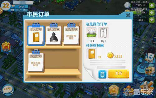 在订单产出的这些材料集齐一套后,便可以升级住宅建筑了,当然土豪也可以直接购买材料发送订单来快速获得建筑升级所需的物品哦。