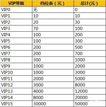 VIP系统的出现完美解决了大家关于充钱充多少这个问题的纠结,下面,我就把VIP的成长收费制度表展示给大家!