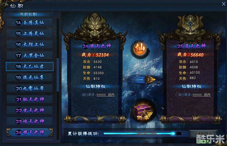 如果需要更多战功的话,可以点开“供奉”,花点元宝“救济黎民”。