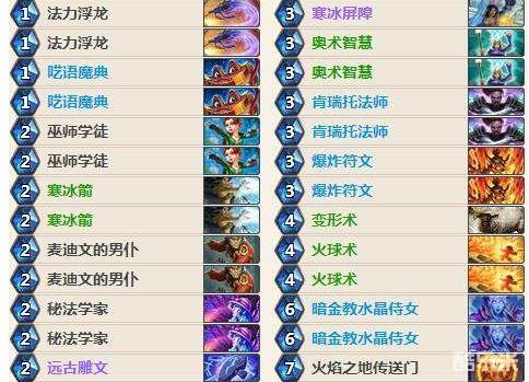 我们起手找法力浮龙、巫师学徒、秘法学家,对上快攻卡组时可以留寒冰箭,有秘法学家的话可以同时留麦迪文的男仆;对上控场卡组时可以留远古雕文、呓语魔典。