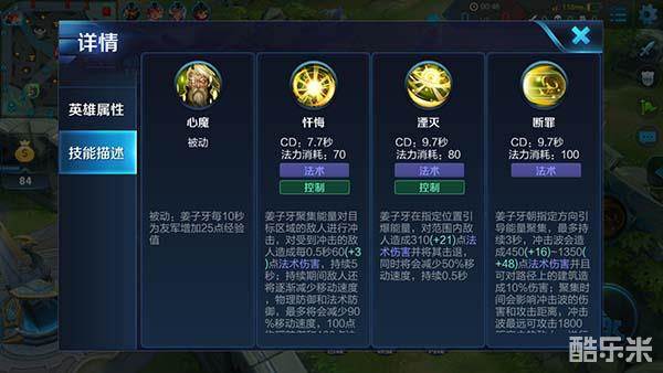 总结:姜子牙的技能有很强的辅助作用,游戏中可以用姜子牙打辅助,简单易操作,伤害也非常高,推荐大家使用。