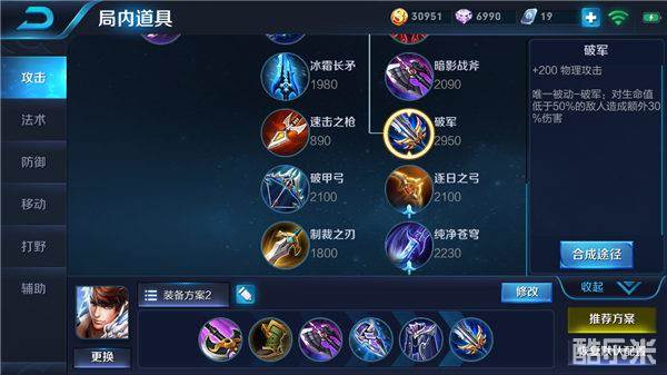 破军增加的高额物理攻击让赵云的技能伤害以及平A伤害有着质的飞升,并且被动效果当赵云攻击血量低于一定百分比的敌人时,将会对敌人附加一定百分比的伤害,使赵云能够轻松的击溃敌人。