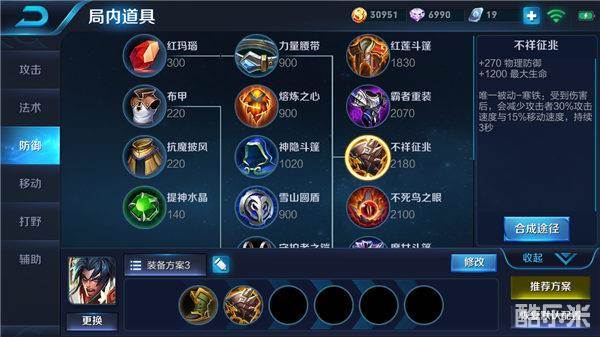 总结:上面给项羽推荐的这套出装,续航能力和抗伤能力都会得到大幅度的提升,并且有了这套出装之后,项羽也可以帮助队友抗下敌人成吨的伤害输出。