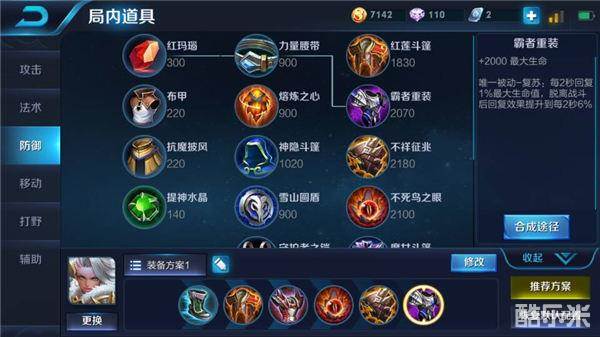 六神装推荐:抵抗之靴、红莲斗篷、反伤刺甲、不死鸟之眼、不祥征兆、霸者重装
