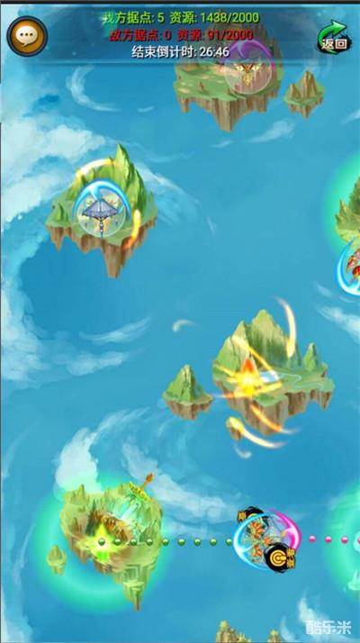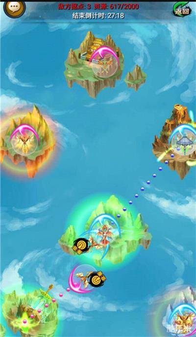 神域争霸五个资源岛,抢占之后会显示绿色,敌方抢占显示红色,己方一个岛每秒一点资源,两个岛四点资源,三个岛八点资源,四个岛十三点资源,五个岛二十点资源,任何一方先达到2000点资源为胜利,神域争霸杀人不加此点数。点击抢占岛屿三十秒后,岛屿开始属于己方,开始增加资源。
