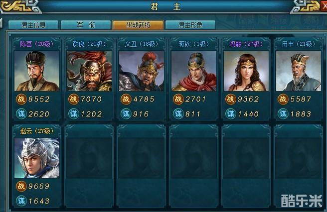 在统兵系统中将当前等级最大可出战武将数量都确定编制,则可以让武将加入到战斗中。