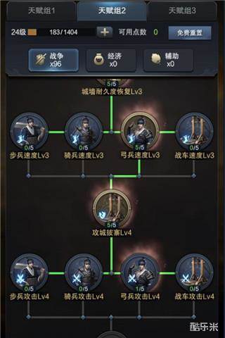 天赋,可能很多的主公就没有特别在意。天赋的经验可以通过各种活动,如城池沦陷、杀敌活动、讨伐黄巾、阵营纷争等获得,获得天赋经验提升天赋等级,每提升一个等级,主公可以获得4个天赋点,如果主公主战,可主要加点在战争页,同样也可以提升四个兵种的四个维度的属性。