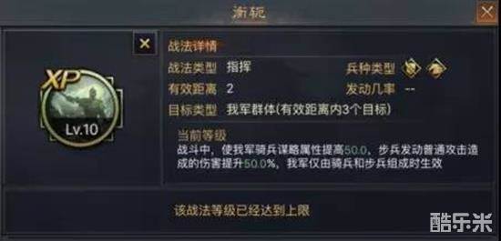 XP庞德自带战法可以使骑兵与步兵攻击造成的伤害提升18%(第三回合后,且此效果与【衡轭】并不冲突),并且自带分兵效果,与【衡轭】契合度非常高,【衡轭】加成后XP庞德的谋略也会处于一个较高的水准,可以在一定程度上避免物理系武将容易被秒大营的境况。