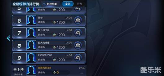在统御力排行中可以查看全区和好友在五军对决中的统御力。