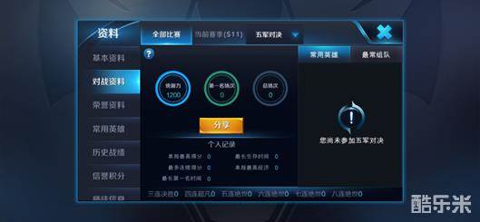 我们为五军对决模式准备了专用的个人资料展示页面,并引入了“统御力”这一新的战力单位。