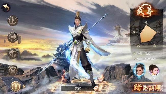 武尊武器为一柄长枪,属于高攻、高防、低血量的职业,以戳、挑、刺、投来攻击,对敌人形成犹如狂风暴雨的打击。技能效果非常炫酷,释放必杀时,还会有数条金龙游走于身旁,加上武尊银枪白甲的拉风造型,简直是新一代男神的代表!