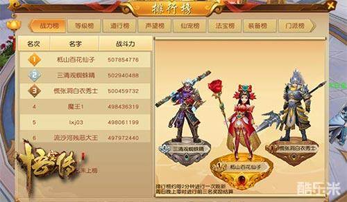 正版授权手游《悟空传》中为玩家开放了诸多排行榜,当玩家等级解锁排行榜玩法后,可在【玩法-排行榜】中看到各种排行榜,有战力榜、等级榜、道行榜、声望榜、仙宠榜、法宝榜、装备榜和门派榜,面面俱到。每个榜单上,将显示最近一次更新的前50名玩家或帮派的排名信息;位列前三名的玩家或门派,在排行榜右侧有单独的外观展示,可谓羡煞旁人。