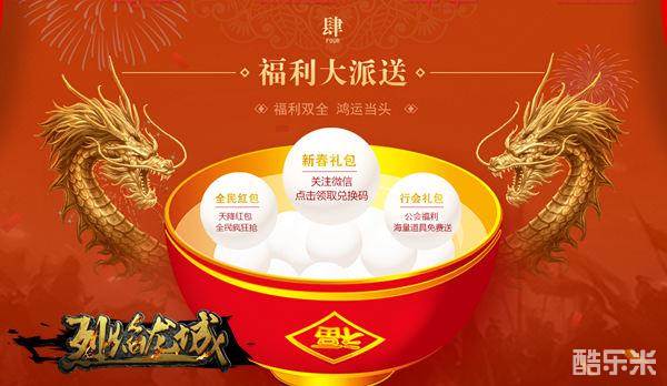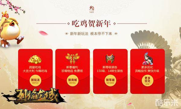 龙城吃鸡,大吉大利!仙峰游戏旗下全民攻城PK手游《烈焰龙城》新版贺岁版今日上线,全新吃鸡玩法-跨服大逃杀即刻可以体验!同时还有传奇积分商城、全新等级、全新转生等级和装备、超炫酷翅膀、多样玩法优化等等,配合各项全民福利大派送,让玩家们畅快吃鸡的同时,一起喜迎新春!新春版专题现已上线,更多活动敬请关注哟!