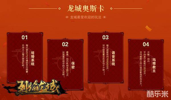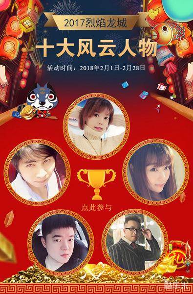 《烈焰龙城》2017年度“十大风云人物”评选将于2月1日开启!所有热爱烈焰龙城的玩家均可报名,由玩家票选出前32强获得游戏豪礼,官方根据人气和实力选出前十名,获得最强风云人物称号!同时本次新版专题特上线“龙城奥斯卡”,好玩的好看的数据和奇葩总结都在这里哟!