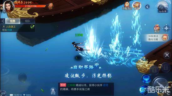 游戏中融入轻功玩法,人人皆可一展飘逸身姿。游戏中有很多高低错落的立体场景。玩家可操控角色于地图上下飞跃,比如施展水上漂,在狭窄的小舟上也能自如地挥剑战斗。