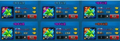 【5级至9级幸运星每天限买两个, 10级幸运星每天限买一个】