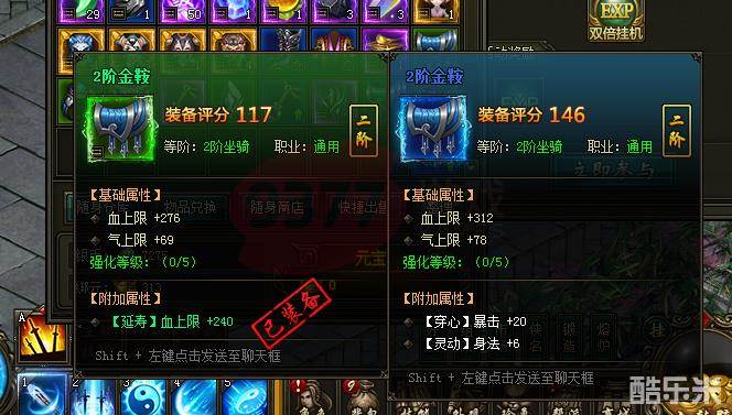 第1步,判断是否需要替换目前使用的装备,提升战斗力。如上图,左侧是目前已用的装备,右侧是背包中获得的待用装备。当右侧的装备评分高于左侧时,可以考虑使用提高战斗力。