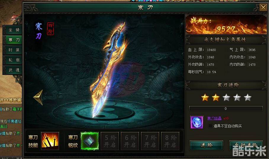升级需要素材:寒刀结晶【绑元/元宝自动购买】