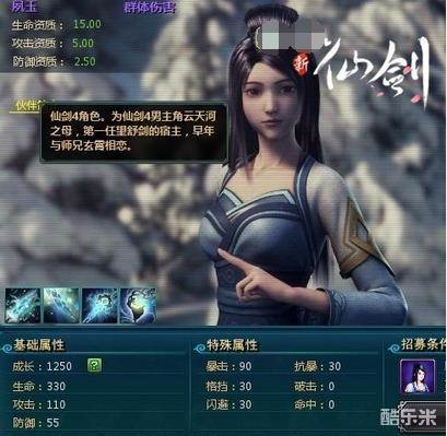 新仙剑的夙玉是琼华派女弟子,琼华派弟子云天青之妻,仙四主人公之一云天河之母。后与云天青隐居青鸾峰,被琼华派除名。虽只是被提到的一个人物,正面出现只有片头动画一闪而过和在玄霄的回忆里,但她却是引导仙4剧情的关键人物。甚至连“我命由我不由天”的主题观点也是她最先提到的。出场不多,话不多,一个回眸,一句话语,却吸引了不少人的目光。那么这样的伙伴在新仙剑中拥有怎样的能力呢?