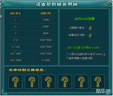 大结:每5周进行一次大结(勋章系统开发完成后结算周期会调整得更短),根据战队积分排名给予奖励,排名越靠前奖励远古功勋越多。