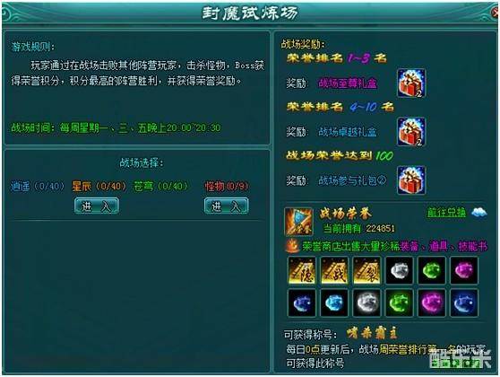 3. 战场结束时,荣誉排名1-3名将获得战场至尊礼包*2;荣誉排名4-10名将获得战场卓越礼包*2;荣誉超过100的所有玩家将获得战场参与礼包。