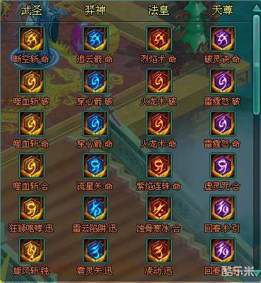 在这里给大家举一个例子:比如说你是天机转武灵,现在你需要旋风斩·命这个技能符文,这个时候你千万不要去直接换取旋风斩·命这个符文,因为你原职业是天 机,你是装备不上武灵符文的。你所要换取的是相对应的天机技能符文 回春术·命,然后装备上升级即可。其他的符文都是类似做法即可。