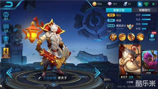 老夫子是王者荣耀中非常热门的战士英雄,被动可以强化老夫子的输出能力,这也是老夫子打野效率的基本保证。凭借着稳定的控制技能和持续输出能力,老夫子不管是野区遭遇战,还是游走GANK都能表现的非常出色。