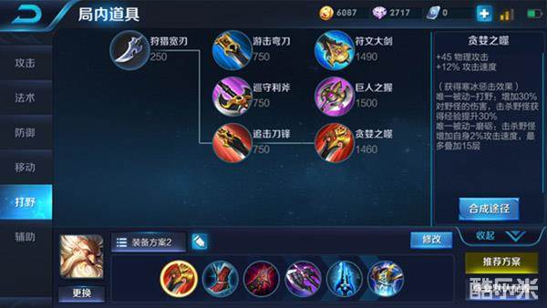 贪婪之噬是一件输出型打野装备,成长属性在老夫子清野效率的辅助下可以得到很快的提升,贪婪之噬提供的攻击速度能让老夫子在输出能力上得到很大的提升。冷静之靴提供了移速和冷却缩减,前期配合大招游走GANK效率更加显著。老夫子前期核心就在于清野发育以及大招GANK,而这两件装备的搭配让老夫子能够充分的发挥出自身的作用。