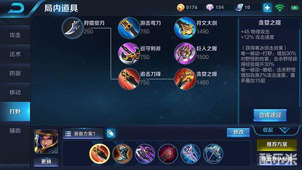 追击刀锋:刘备的被动技能注定了刘备是一个刷野速度非常快的英雄,所以刘备非常适合打野,在打野装备的选择上,推荐出追击刀锋,由于刘备靠普攻输出,所以攻击速度对刘备的收益非常高,而追击刀锋满层的被动效果可以为刘备提供非常高的攻速,并且价格也非常低,性价比非常高,但是不建议前期将追击刀锋升级为贪婪之噬,比较拖节奏。