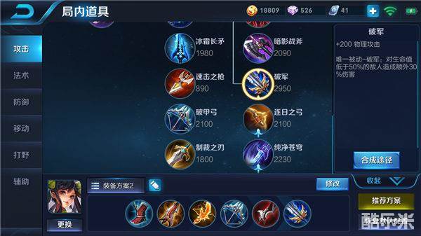 冷静之靴、无尽战刃、闪电匕首、破甲弓、泣血之刃、破军