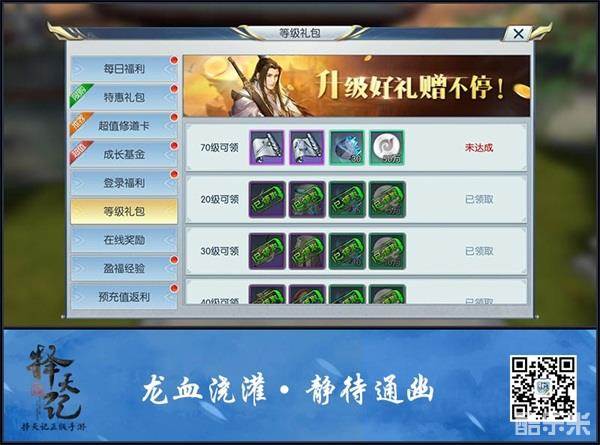 (5)开服冲级礼:活动时间内玩家达到指定等级即可获取专属大礼包。