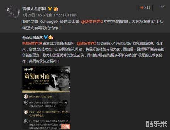 电音新秀徐梦圆微博发声,古风电音《change》将进入潮流武侠大世界《剑侠世界2》手游。作为中国新生代九零后音乐制作人,徐梦圆音乐粉丝超百万,国内电音人气超高。潮流武侠与古风电音的激情碰撞,火花一触即燃。展现新姿态,让武侠与电音一起炫动江湖!