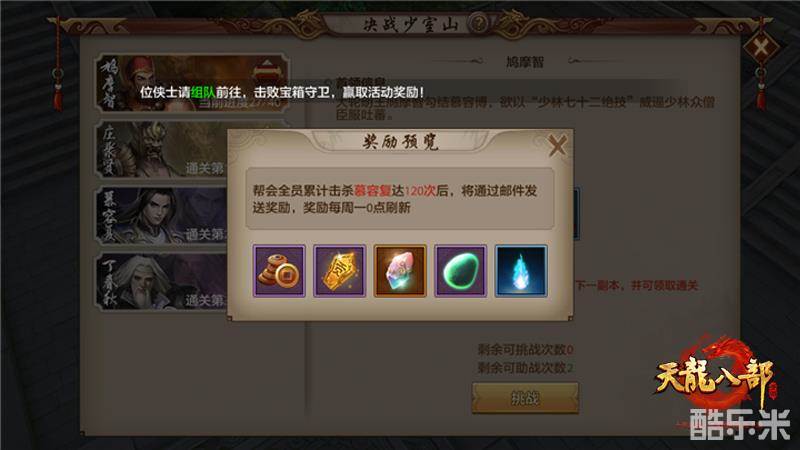 刀剑诗酒,快意江湖!十年经典,金庸正版授权的《天龙八部手游》即将上线全新资料片,更新玩法猜想进行时,公开票选玩家期待玩法,一起筹备新版本。其中帮会副本位列更新玩法竞猜选项之中,作为游戏首次推出的,需要帮会成员共同参与的福利性副本玩法,帮会副本一时间引发了各方关注。如何进行挑战,副本掉落是什么……下面就一同来抢先了解下全新帮会副本:决战少室山!