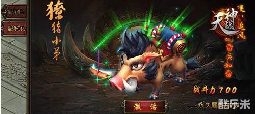 坐骑有三种幻化,即獠猪小弟、玄素熊猫和浴火凤凰,这些可是卖萌耍帅御敌的高手。獠猪小弟虽说其貌不扬,但可为玩家永久的加成大量的属性,是玩家的好帮手,而且可参加王城魔影活动,玩家就有机会激活此种坐骑幻化哦!